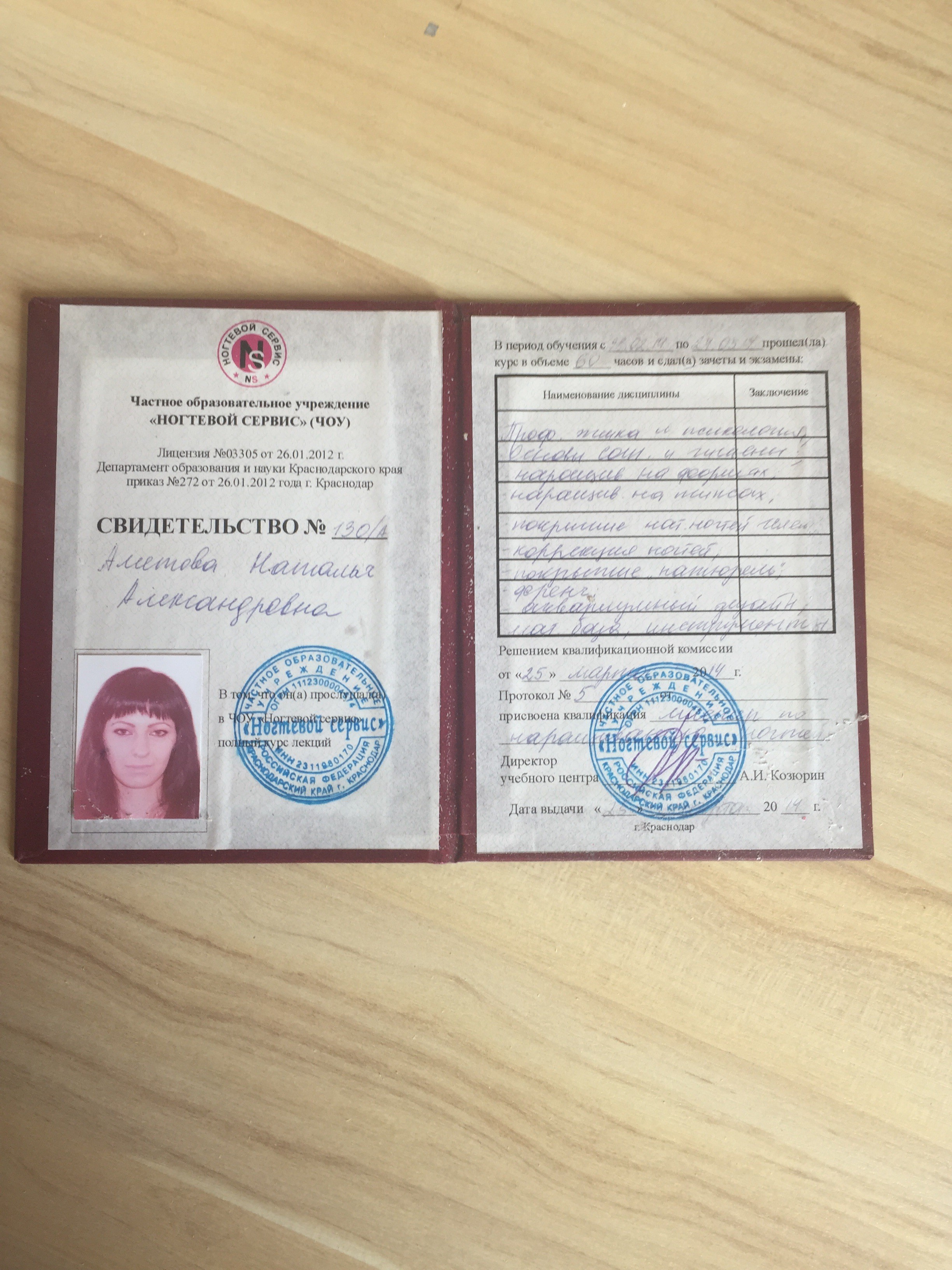 О мастере: Позвонить мастеру Анапа, Лермонтова,116 Понедельник 9:00 − 21:00 Вторник 9:00 − 21:00 Среда 9:00 − 21:00 Четверг 9:00 − 21:00 Пятница 9:00 − 21:00 Суббота 10:00 − 21:30 Воскресенье 10:00 − 21:30 Информация о мастере Мастер маникюра, наращивания( моделирование) ногтей. Комбинированный маникюр с покрытием гель лак Поделиться: